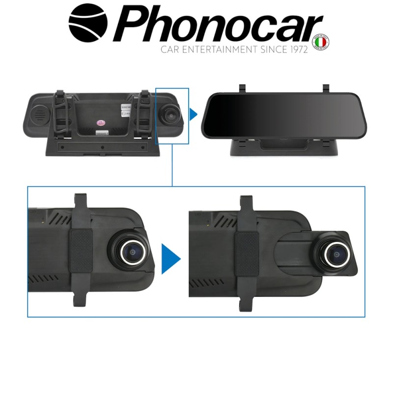 Πολυλειτουργικός καθρέφτης οπισθοπορείας με ενσωματωμένη ρυθμιζόμενη μπροστινή και πίσω κάμερα με καλώδιο 15 mt για εγκατάσταση.