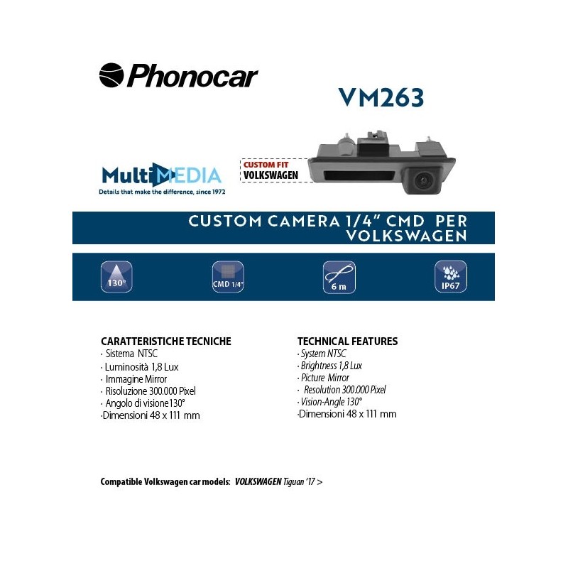 Καμερα ΟΕΜ για Audi A3, A4, A5, A6, Q7, 2003>2013 AHD1080P/720P 25fps , κοντεκτορας RCA, 150o , 1920x1080