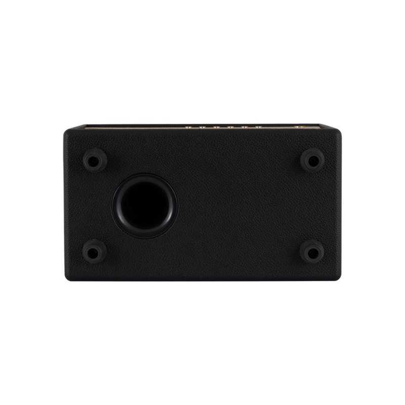 The natural and well-balanced sound image comes from the rigid midrange paper cone woofer that thanks to a special coating can perform at low and high volumes, and the silk dome tweeter with a high-quality neodymium magnet that ensures a crisp ant highly detailed sound. To make sure that the bass is powerful and precise the cabinet is made out of MDF and equipped with a reflex port, together with the acoustic feet these features minimize effect loss to vibrations and allows the woofer to perform to the fullest. The control panel and the custom Dynavoice grille are copper coloured, made out of anodised aluminium making them extra resilient, and the included strap makes the speaker easy to carry.