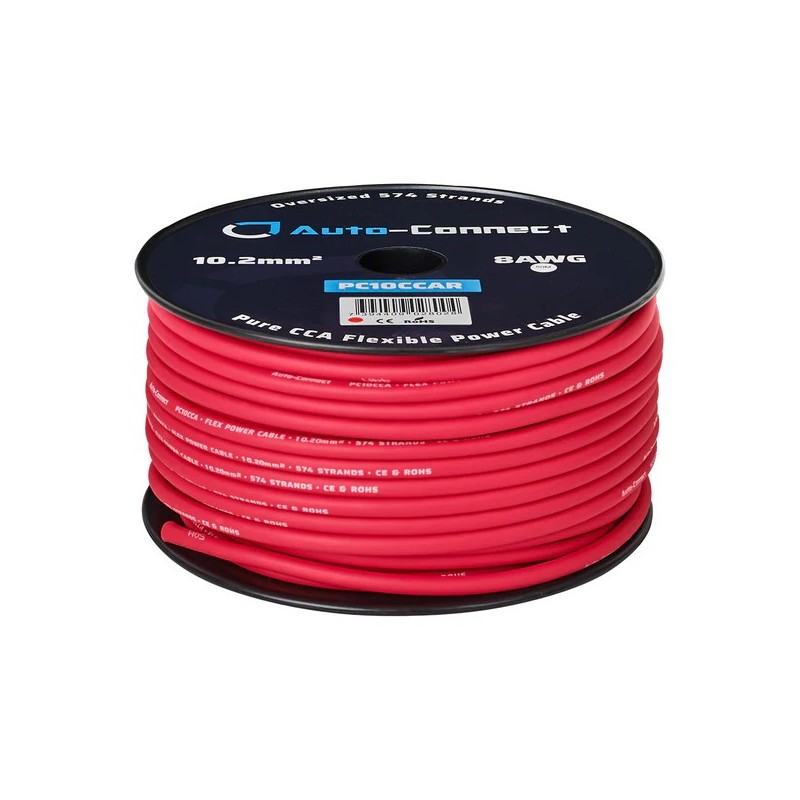 PC10CCAR is an extremely flexible power wire for automotive use. Made from CCA (copper-clad aluminium), this wire ensures a great price-to-performance ratio with solid power transfer. It features an oversized 10.2 mm² CCA conductor with a soft, flexible PVC insulation that makes the wire easy to use and route in your vehicle.