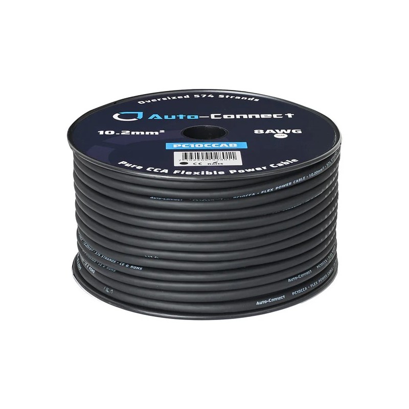 PC10CCAB is an extremely flexible power wire for automotive use. Made from CCA (copper-clad aluminium), this wire ensures a great price-to-performance ratio with solid power transfer. It features an oversized 10.2 mm² CCA conductor with a soft, flexible PVC insulation that makes the wire easy to use and route in your vehicle.