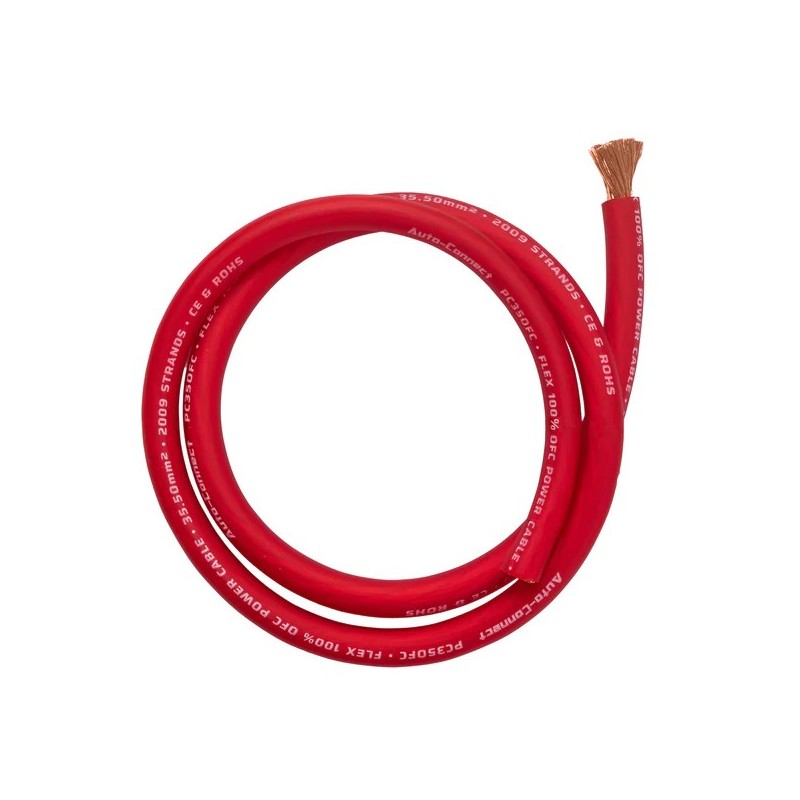PC53OFCR is an extremely flexible power wire for automotive use. Made from 100% OFC (Oxygen-Free Copper), this wire ensures the best possible power transfer. It features an oversized 21 mm² copper conductor with a soft, flexible PVC insulation that makes the wire easy to use and route in your vehicle.