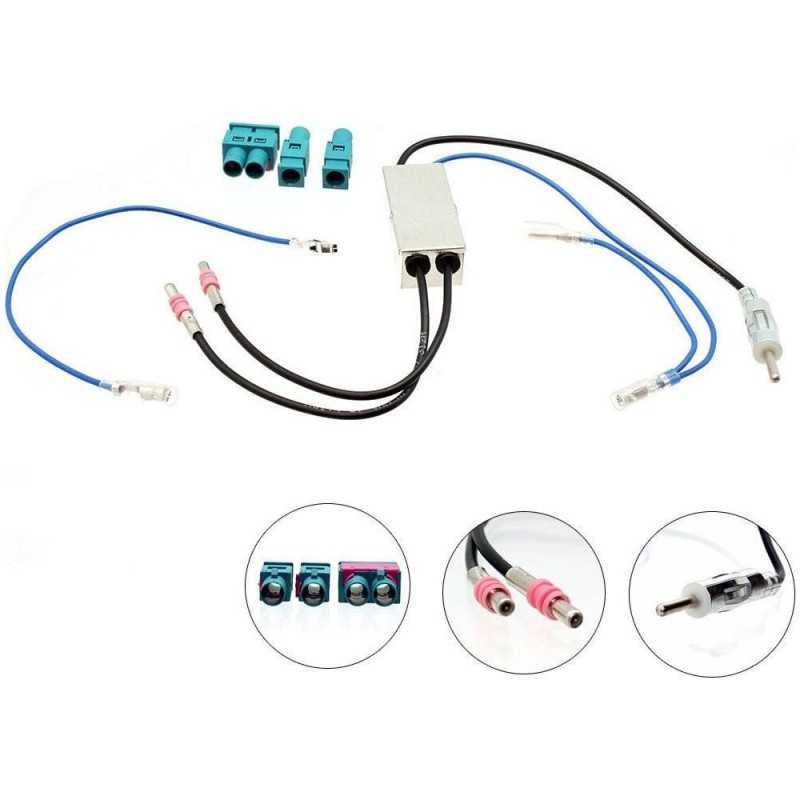 Twin Fakra - DIN Antenna Adapter KitNote:blue: +12V switched antenna remotevehicles with one antenna vehicles with two antenna systemIn case of reception problems:check reception with OEM HU check antenna cable and antenna adapter check +12V adapter phantom supply output check +12V antenna remote assignment alternative with OEM HUcheck vehicle for faults due to retrofit LED lighting check vehicle for faults due to retrofit voltage converter / power supply units / USB charging adapter check vehicle for faults due to retrofit digital power amplifiers