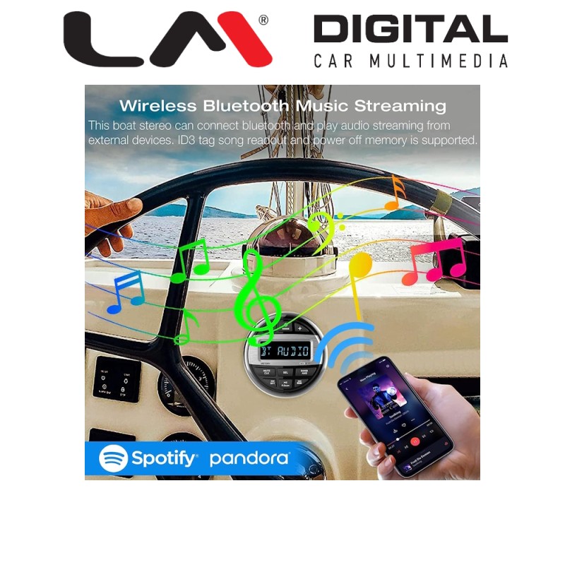 Μαύρο Marine MP3 Player lP6X waterproof, FM/AM receiver,Bluetooth 5.0 , FM radio with 18 stations preset, Bluetooth Music Streaming, can connect amplifier, Multiple compatibility.