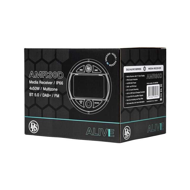 Experience the ultimate in outdoor audio with the Marine Media Receiver AMR30D from the Alive series. Built for durability and superior sound, this powerful receiver features IP66 grade protection, Bluetooth 5.0 streaming, and DAB+ and FM-tuner for a wide range of listening options. Its versatile AUX and USB inputs, along with a comprehensive 10-band equalizer, ensures a high-quality and customizable audio experience – designed specifically for marine environments.