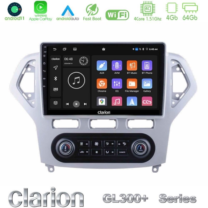 Clarion GL300+ Series 4Core Android11 4+64GB Ford Mondeo 2007-2011 (Auto A/C) Navigation Multimedia Tablet 10"