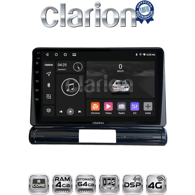Το προϊόν αποτελείται από Clarion multimedia tablet GL700 (XD8581-4645) 4+64GB, 9inch & την αντίστοιχη βάση μοντέλου οχήματος