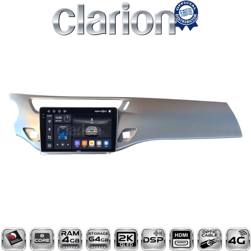 Το προϊόν αποτελείται από Clarion multimedia tablet GL700 (XD6125-464) 4+64GB, 9inch & την αντίστοιχη βάση μοντέλου οχήματος