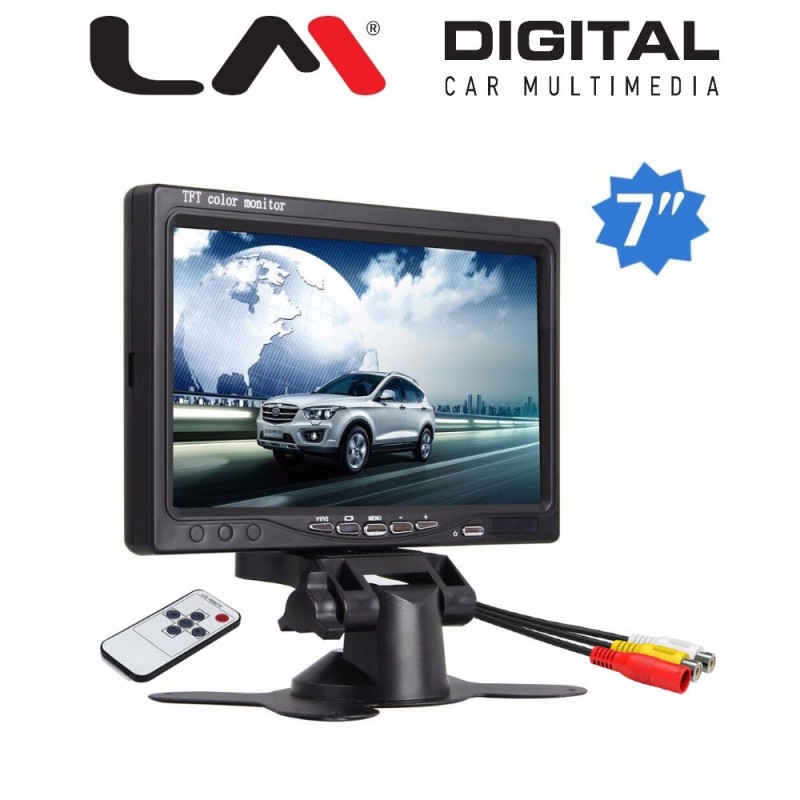 Μονιτορ 7 ιντσες για ταμπλω, Υποστηριζει σημα CVBS / AHD 720P / AHD 1080 P. Περιλαμβανει διαχωριστή εικόνας εως 4 καμερες. Συνδεση καμερων με 4 pin Aviator . Αναλυση 1024x600 pix. 9-36V . Τηλεχειριστηριο
