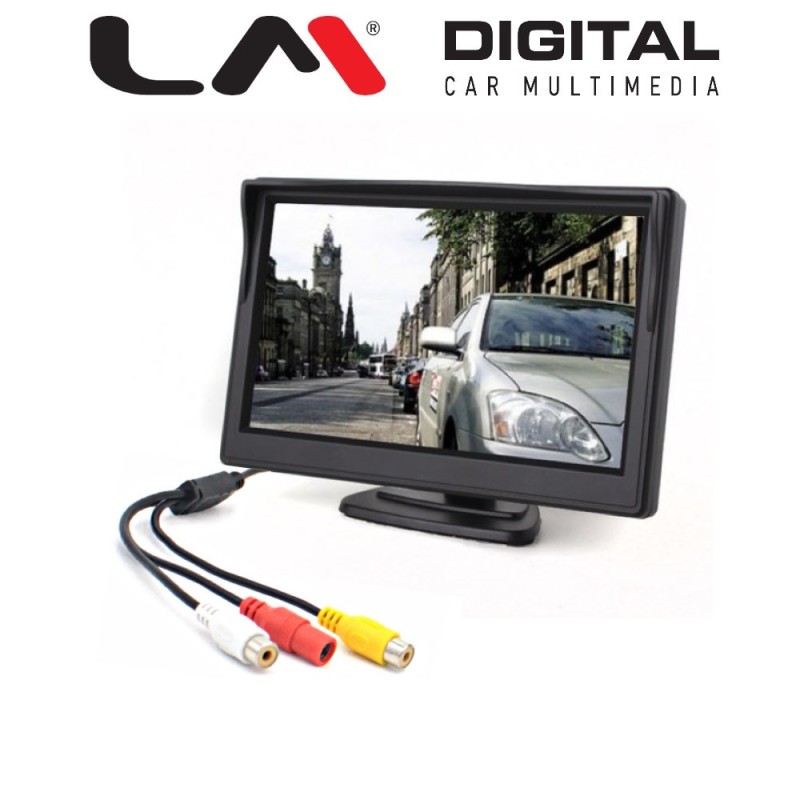 Μονιτορ 5 inch, 12/24V , για μια ή δυο κάμερες στάθμευσης. Υποστηριζονται καμερες Αναλογικες ή AHD Η οθόνη περιέχει δύο εισόδους βίντεο RCA. Η συσκευασία περιλαμβάνει βάση για ταμπλω και βάση με βεντούζα για το παρμπρίζ. Μπορεί να εγκατασταθεί στο ταμπλό, στο παρμπρίζ ή στην οροφή.