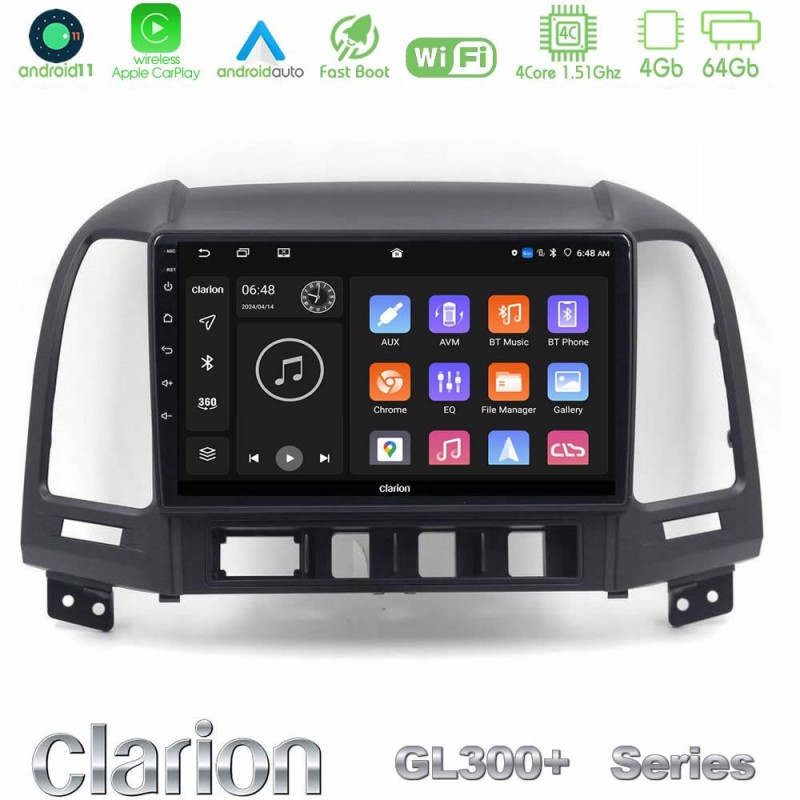 Clarion GL300+ Series 4Core Android11 4+64GB Hyundai Santa Fe 2006-2013 Navigation Multimedia Tablet 10"